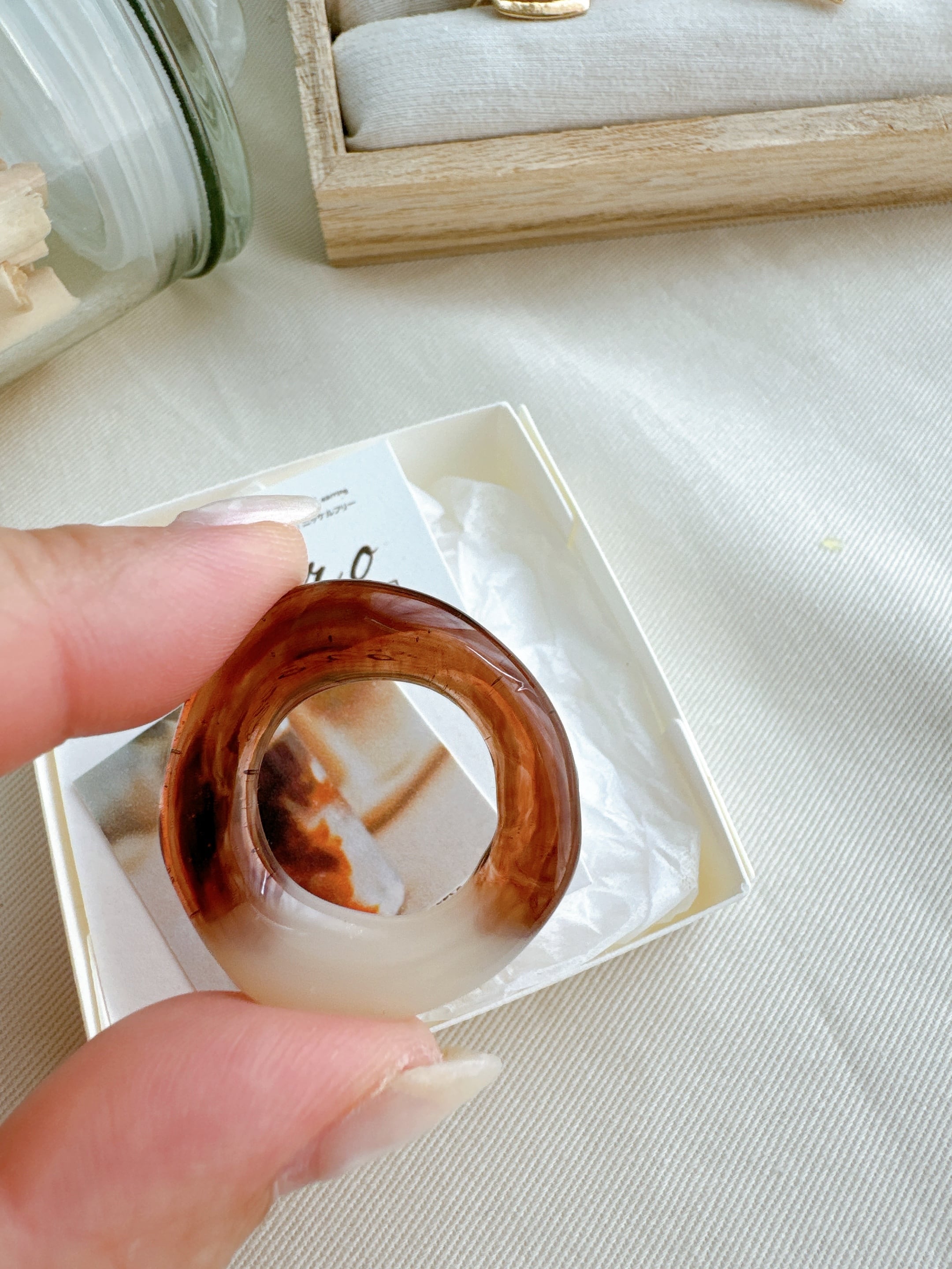 ◻︎真ん中の指に入れるとサイドの指と当たるので親指や人差し指に使っていただくのがお勧め